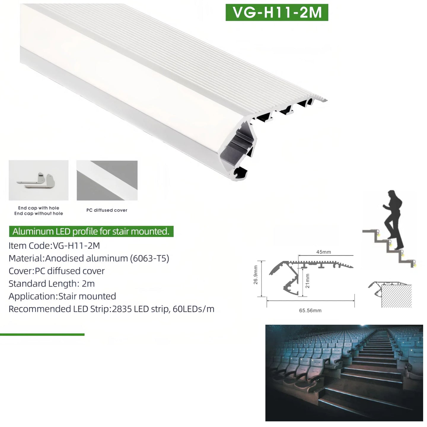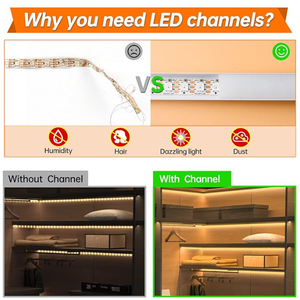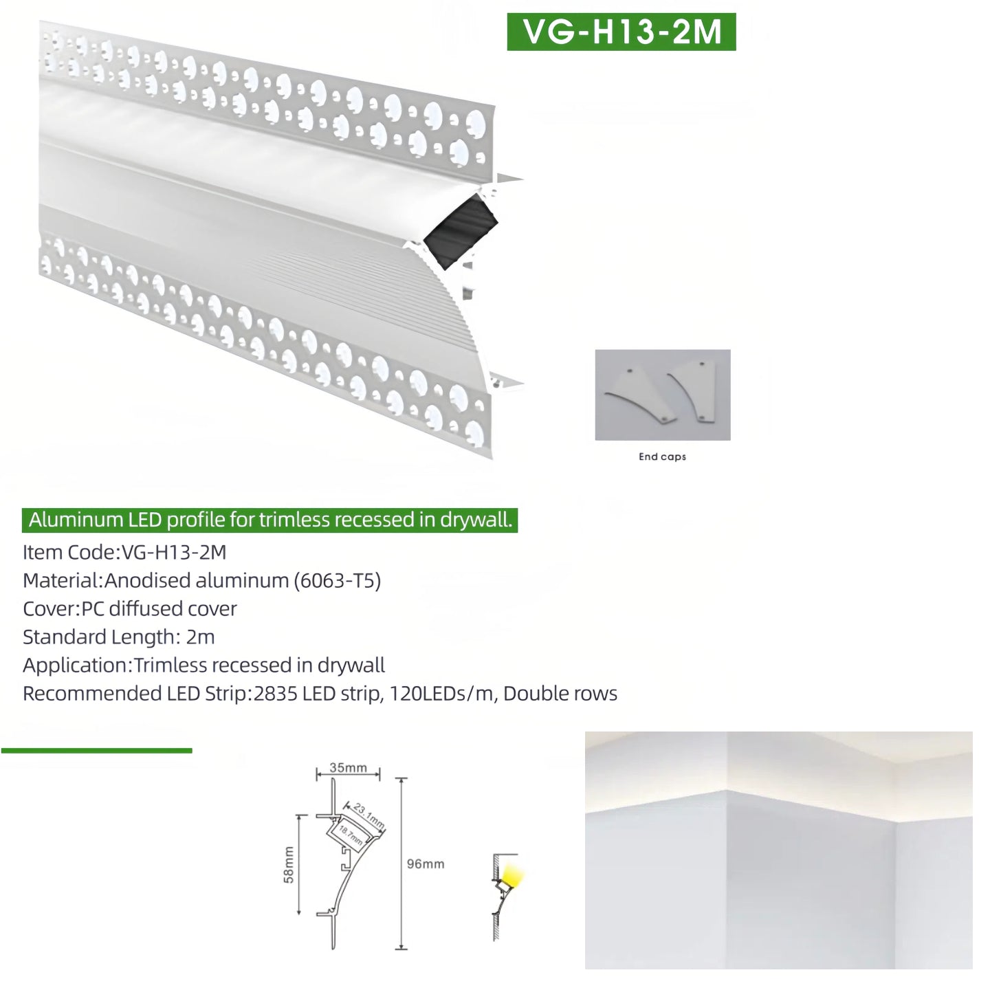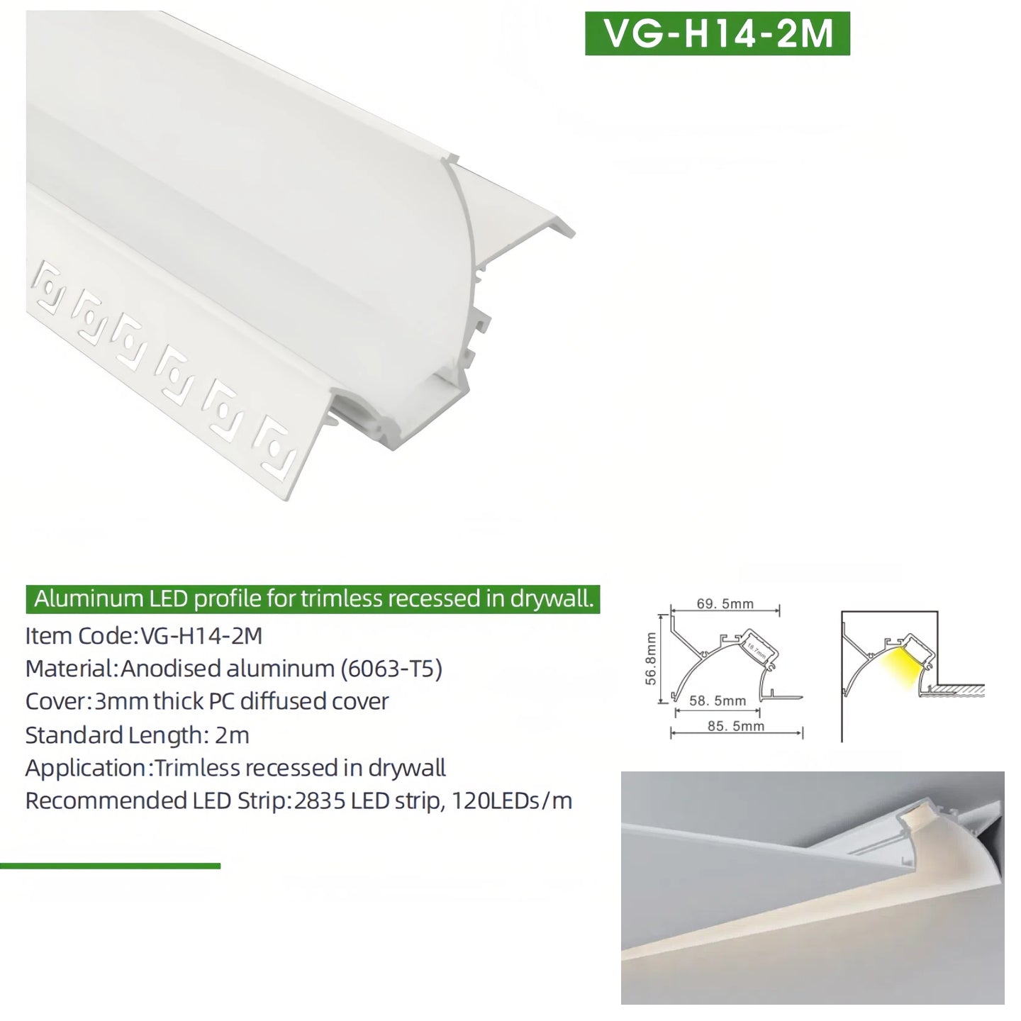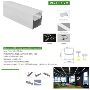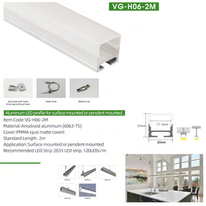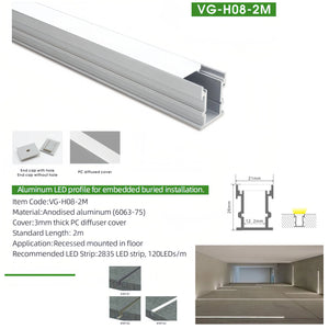 شريط ألومنيوم VG/MODI بطول 2 متر على شكل حرف U مع غطاء أبيض حليبي، وأغطية طرفية، ومسامير، وسلم تثبيت، وسقف، ومشابك تعليق، ومسار ناشر شريط إضاءة LED أسود للإضاءة أسفل الخزانة وخزانة الملابس والعرض